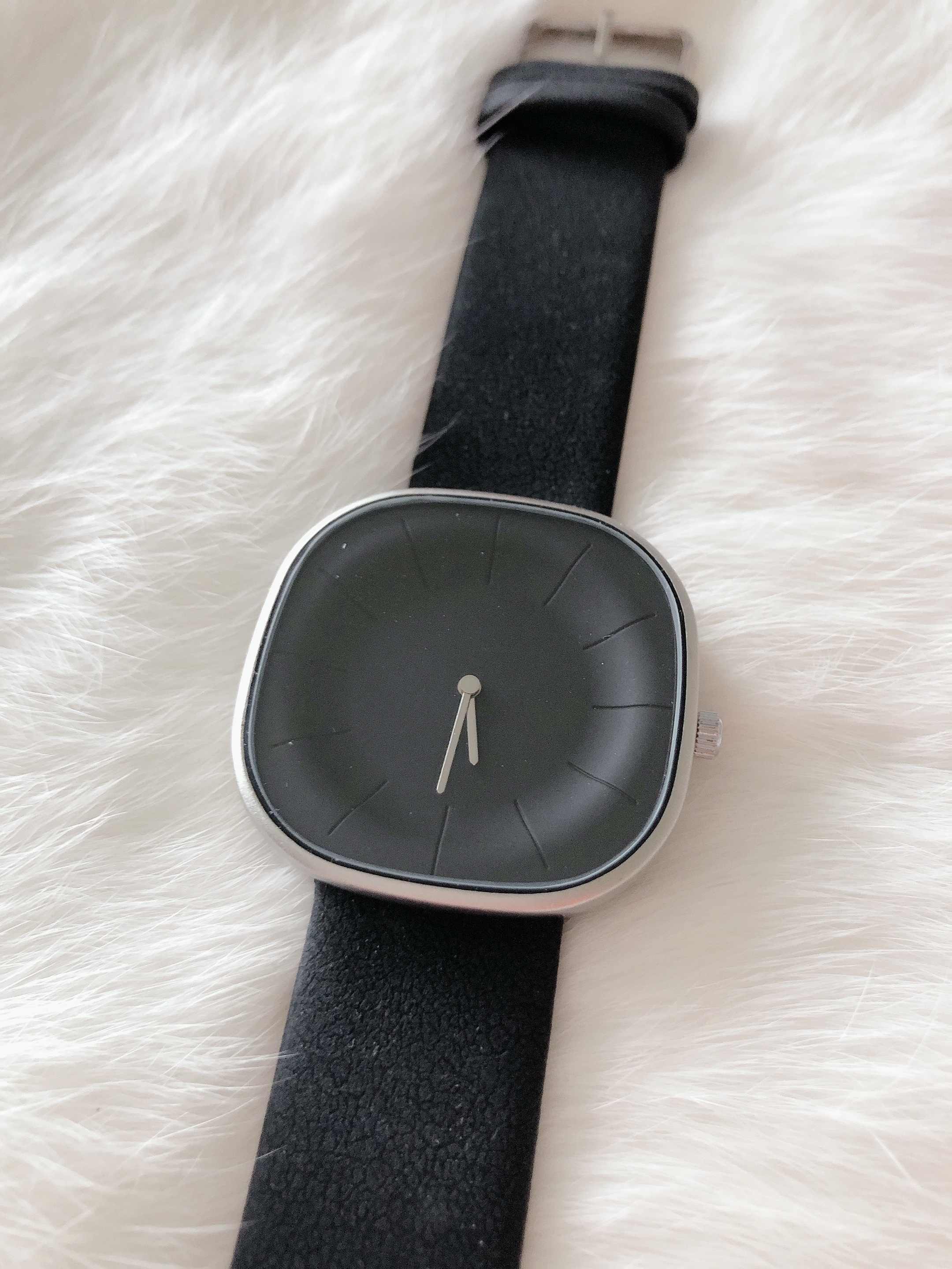 Dit unieke horloge is heel bijzonder. De vierkanten horlogekop straalt echte klasse uit. De binnenkant is volledig zwart met zilverkleurige wijzers.